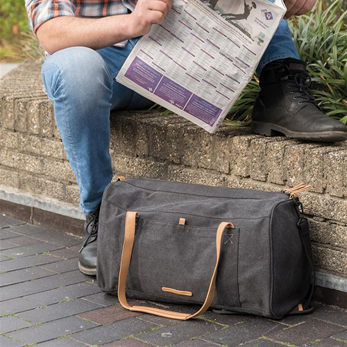 這款天然耐用的帆布包可讓您舒適而時尚地攜帶輕便的旅行或商務必需品。包括可拆卸和可調節的肩帶。不含 PVC。